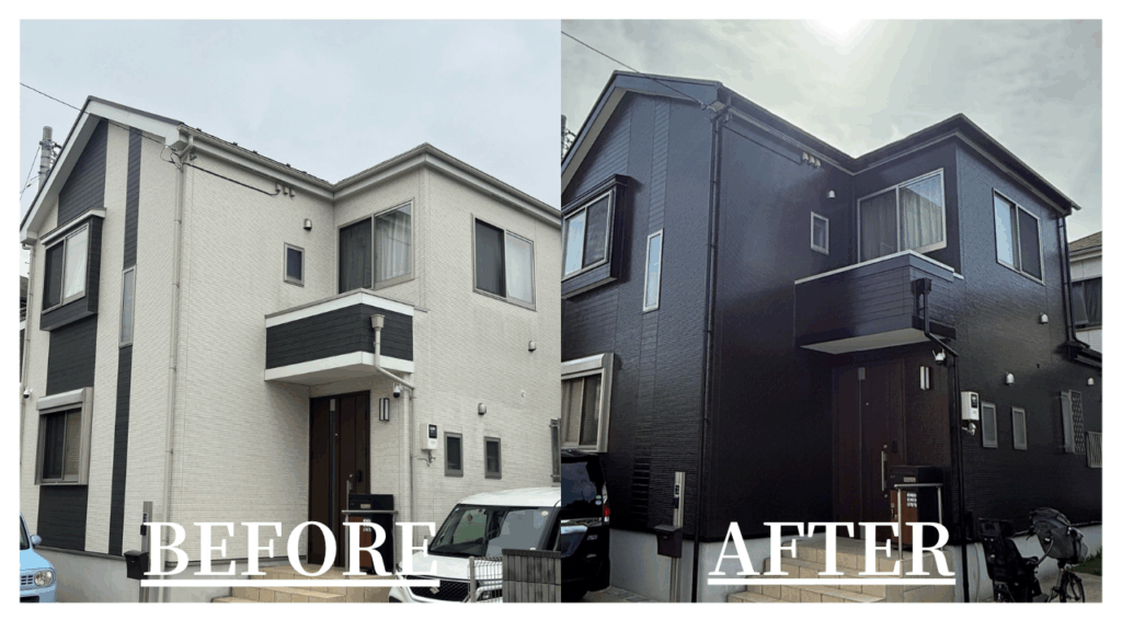 明るいホワイト×グレーの外壁から、艶のあるブラックへ一新。