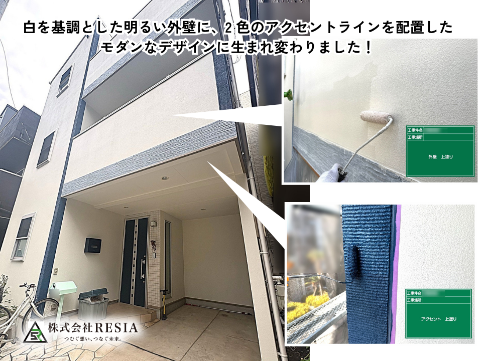 RESIAの外壁塗装では、見た目の印象だけでなく、長くきれいな状態を保つことまで考え、塗料の選定を行っています。