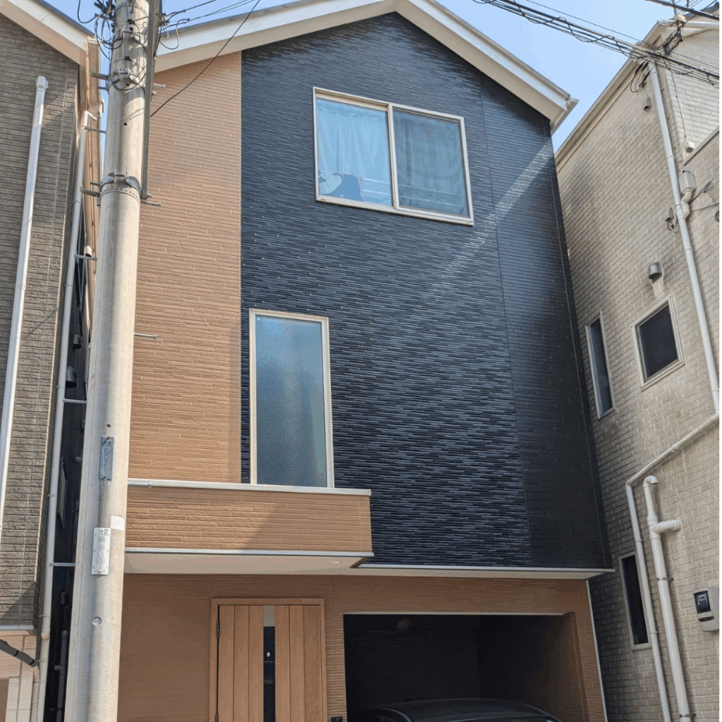 外壁を塗装した事例をご紹介します。神奈川県横浜市在住T様のご自宅を塗装いたしました。 “高級感×耐久性”を両立したツートーン仕上げ!施工前はグレー系のシンプルな外壁でしたが濃色を取り入れることで一気に引き締まった印象に✨玄関まわりのブラ... -